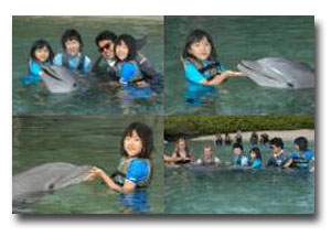 このリゾートにした最大の理由は、イルカとふれあえる「ドルフィン・クエスト」があったからです。1時間くらいの時間で、専用のプールの中で、イルカに触ったり、写真を撮ったり、遊んだり出来ます。ガイドはアメリカ人で英語ですが、丁寧にイルカのことを説明してくれます。クイズコーナーなどもあり、子供は興味津々でした。私たち4人家族と、アメリカ人のカップルの、併せて6人のグループで、1頭のイルカと遊びました。
