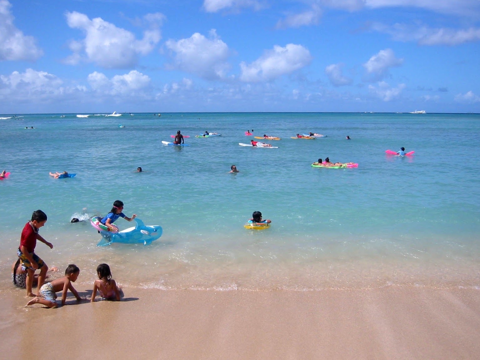 このホテルはワイキキのほぼ中心にあります。プールは小さく深いので、子供が遊ぶのはビーチが中心です。パラソルは2007年は宿泊者の利用は無料でしたが、2009年には$40/dayになっていました。家族向けという感じのホテルではないせいか、小さな子供連れの家族は少なく、パラソルの下で新聞や本を読みながら、のんびりしている外国人(日本人以外)が多かった様に思います。子供向きでは無いかも知れません。
