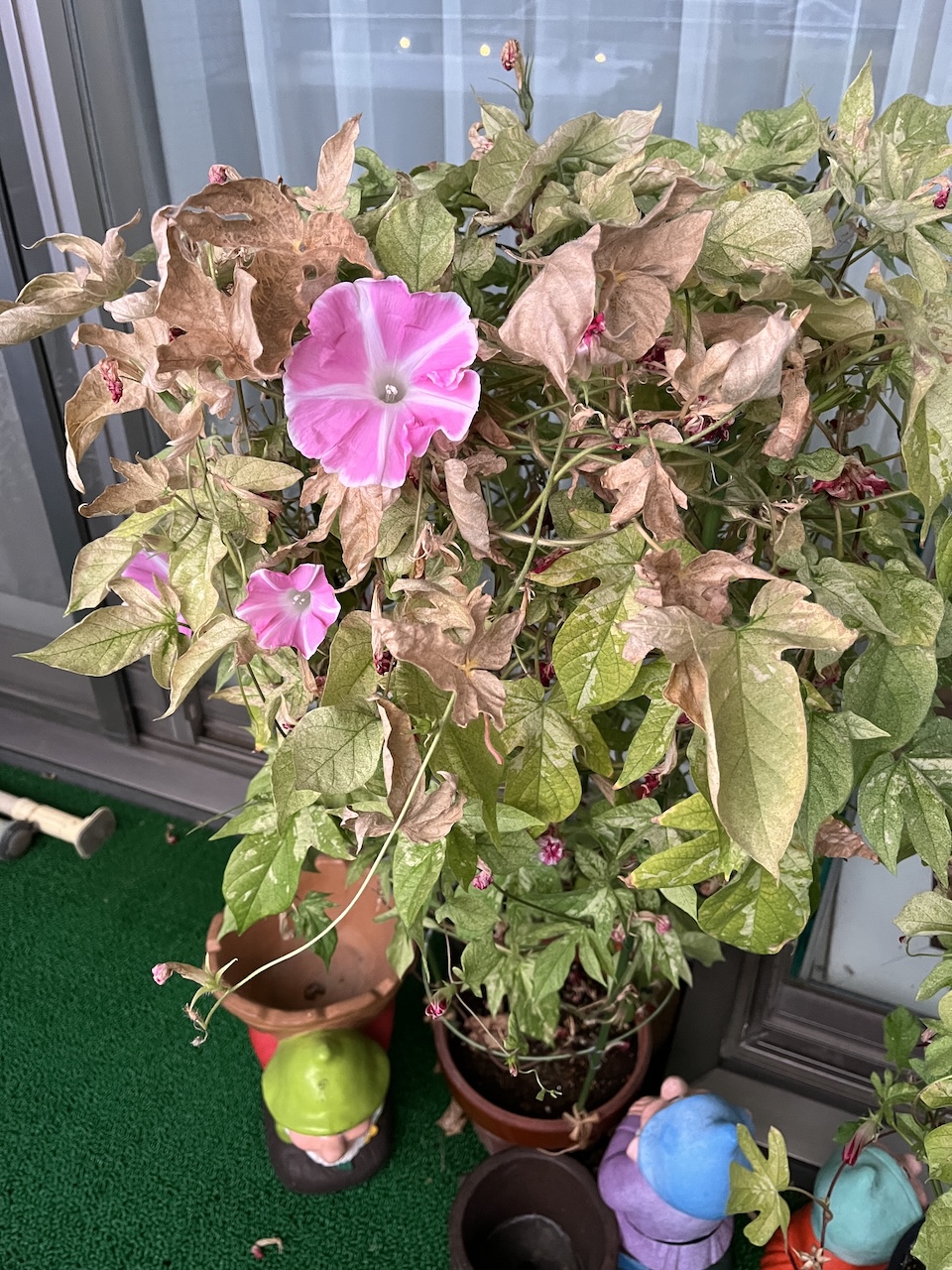 猛暑で日差しが強烈すぎるので部屋側にアサガオを移動