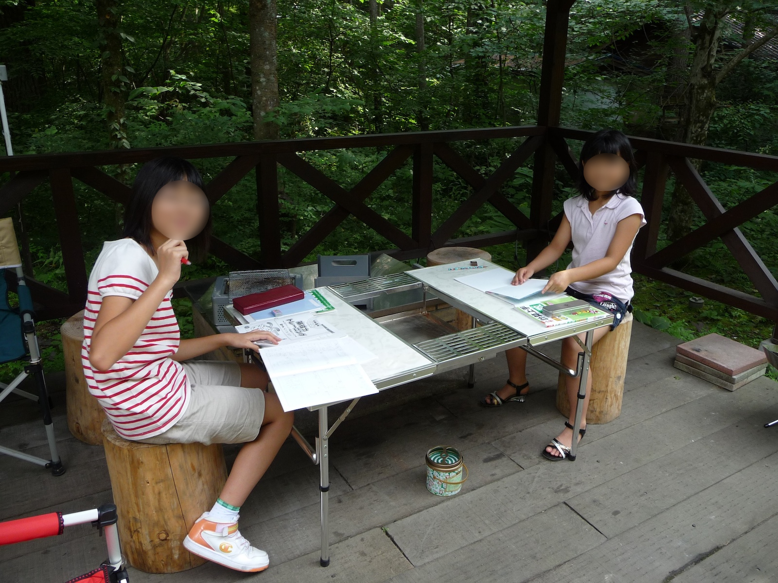↑上の娘が中学受験の年だったため、ここでも塾の宿題をやっていました